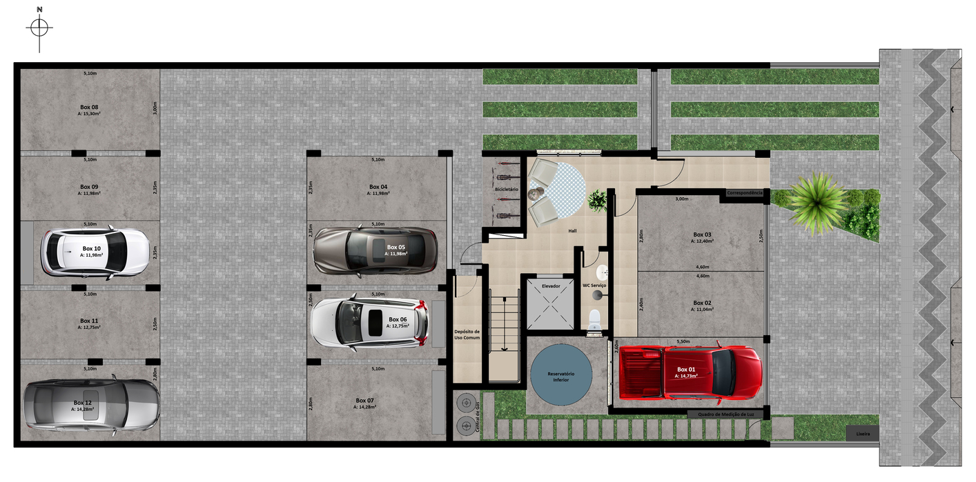 O Residencial Helena é composto por 16 unidades com áreas privativas que variam de 36,39 m² à 73,70 m².